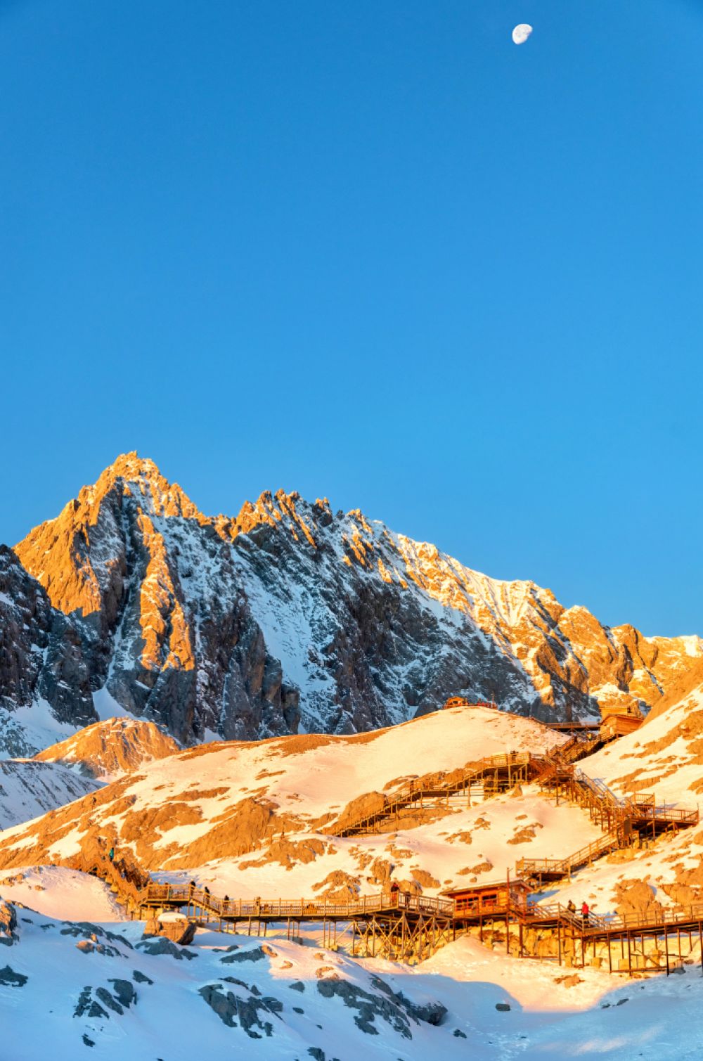看完“日照金山”后,我们接着去蓝月谷。宁静如镜的湖水在阳光下呈现出梦幻般的蓝色,堪称拍照的完美之地。在蓝月谷留下美照后,我们继续前往冰川公园,这里是玉龙雪山的精华所在。沿着木栈道拾级而上,每一步都能感受到雪山的巍峨与壮阔,身边是皑皑白雪,远处是刺破苍穹的峰峦,天地间一片纯净的白,让人仿佛置身于冰雪秘境。