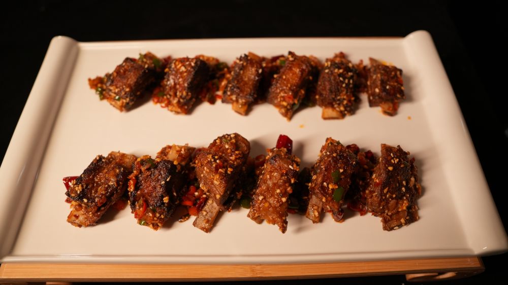 选用农家散养的梅花鹿的肋排,融入云南特色香辣调味,彩椒与洋葱的点缀不仅让颜值在线,更增添了层次丰富的香气。肉质紧实不柴,辣而不燥。