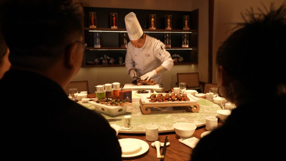 【木王宴语·传袭滇菜 (太和店)厨师为顾客片鸭】桑震宇 摄)
