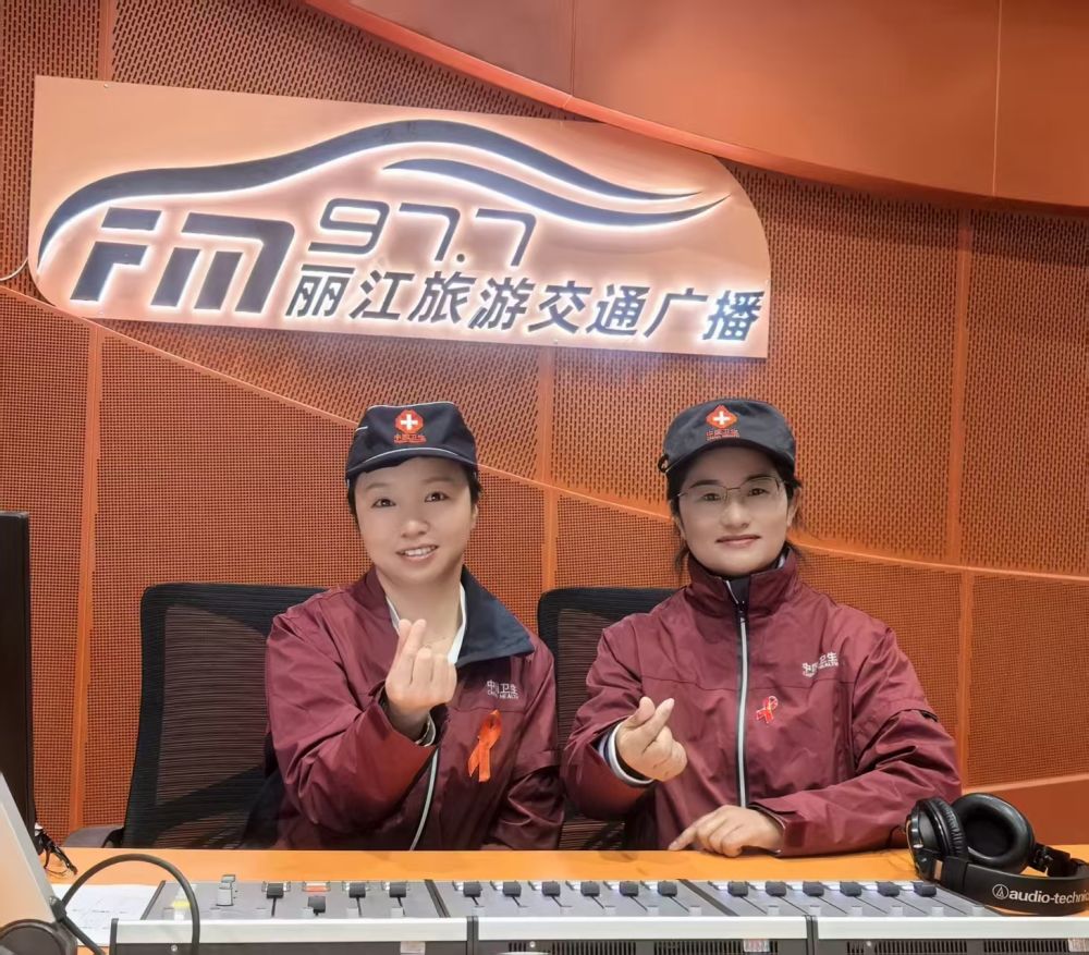 12月1日,丽江市疾病预防控制中心艾滋病防制科科长和秀、主管医师沙学青。做客FM97.7丽江旅游交通广播。(丽江融媒记者 梁国宏 摄)