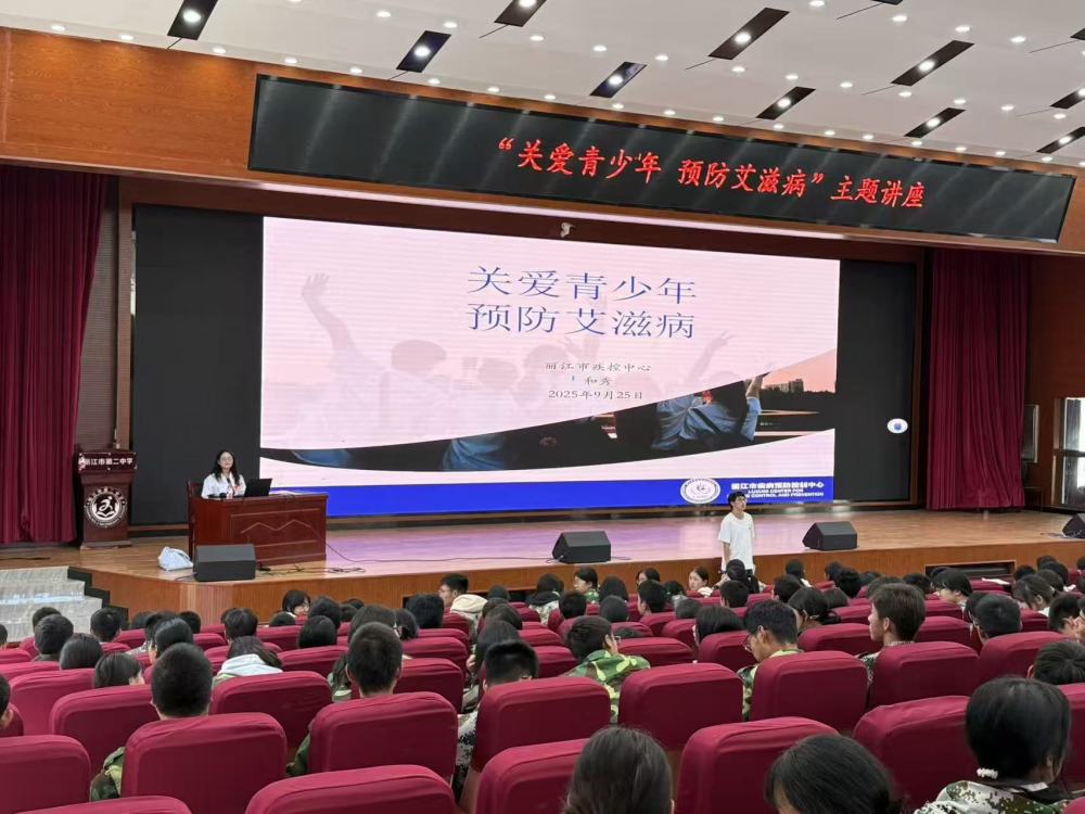 和秀在丽江市第二中学防艾宣讲。(丽江市疾控中心 供图)