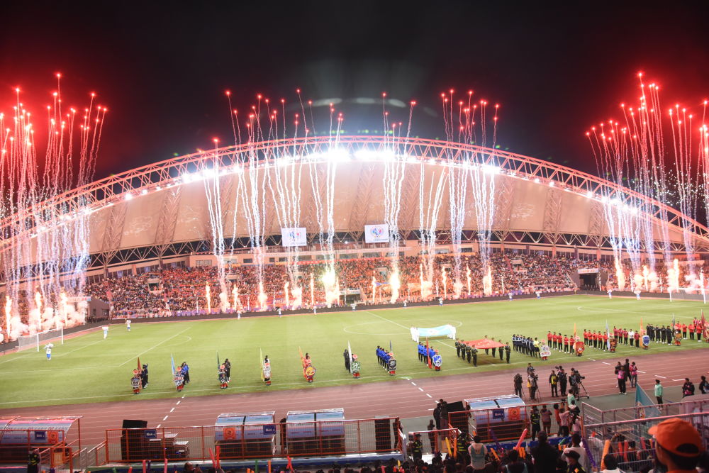 11月29日,2025/2026富滇银行云南省城市足球联赛在玉溪开赛。玉溪高原体育运动中心内,在2.3万名现场观众的欢呼声浪中,16个州(市)代表队逐一入场,以“运动员+特色表演队”形式行进式表演,各具特色的舞蹈体现着云南民族文化的多姿多彩。