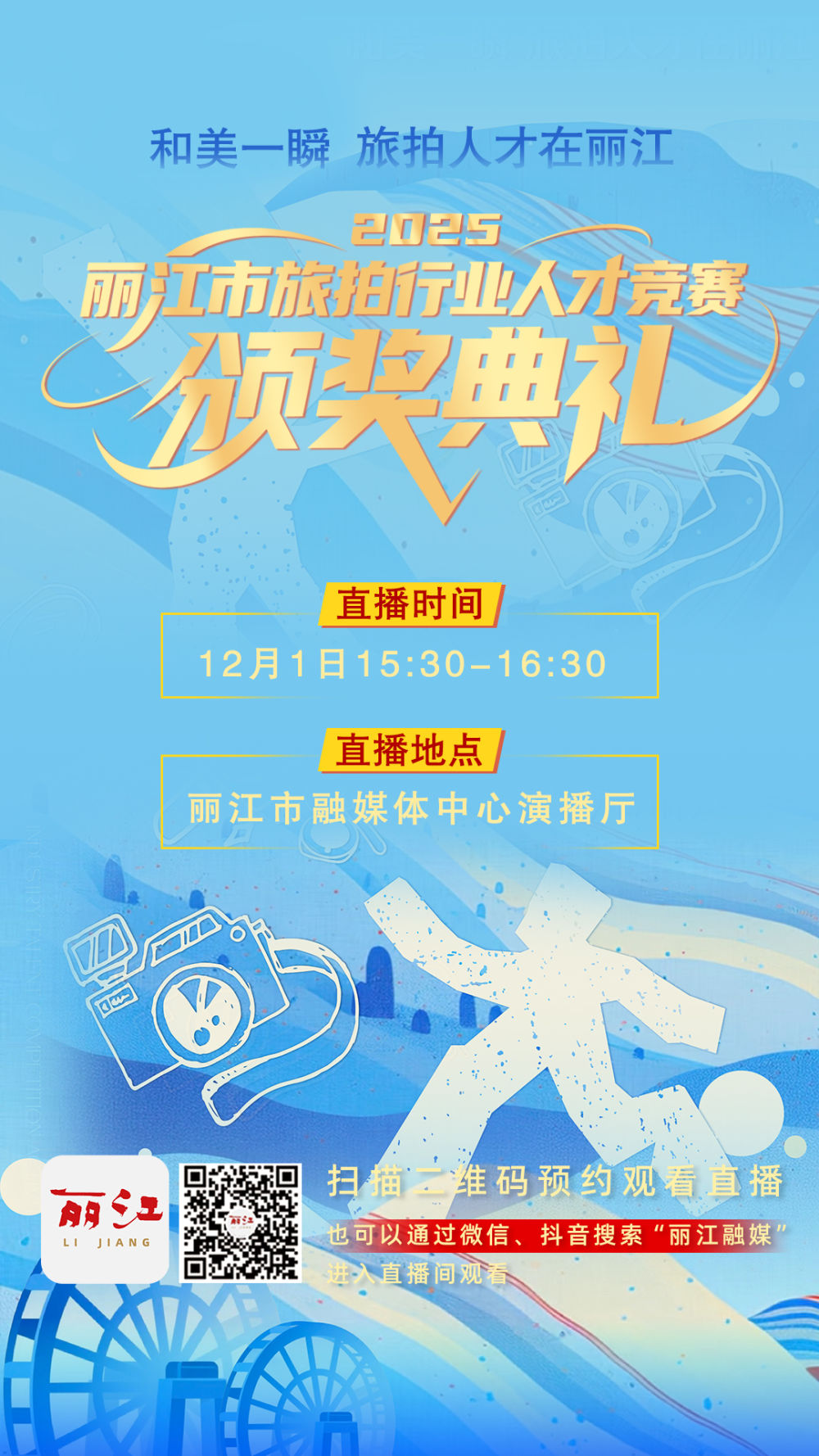 颁奖典礼将通过“丽江融媒”视频号、抖音号