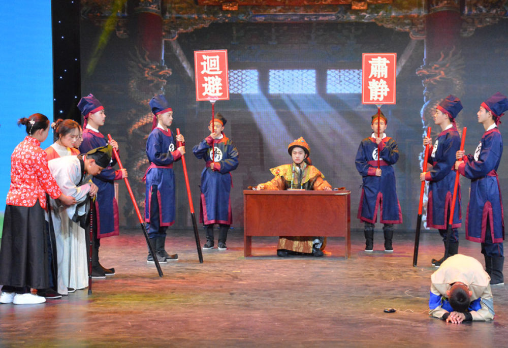 1月30日,丽江市第二中学初中组展演《跨越时空的法鉴》。(丽江融媒记者 吕坤钊 摄)