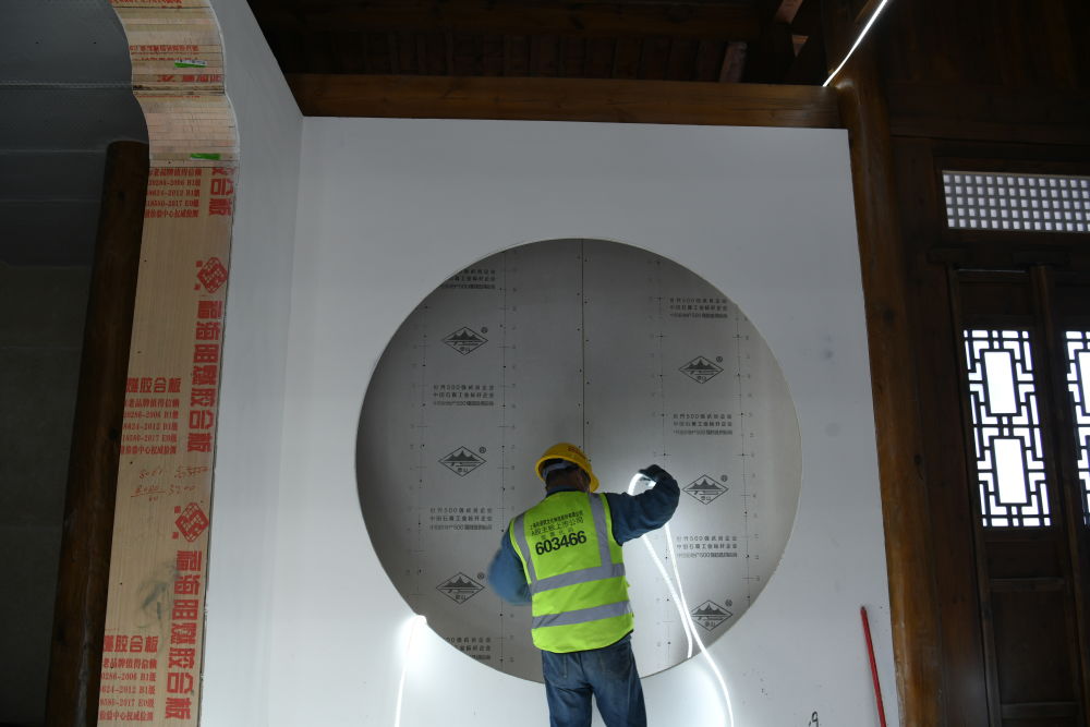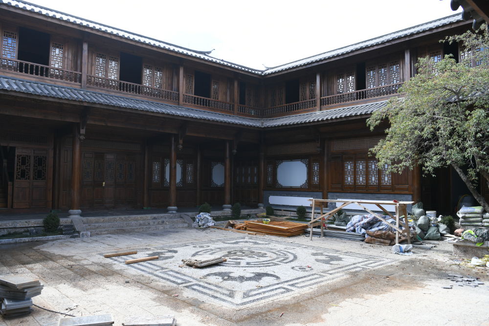 日前,在位于玉龙县白沙镇的白沙壁画数字化建设项目施工现场,记者看到,工人们正在有序开展装修、安装线路等工作。