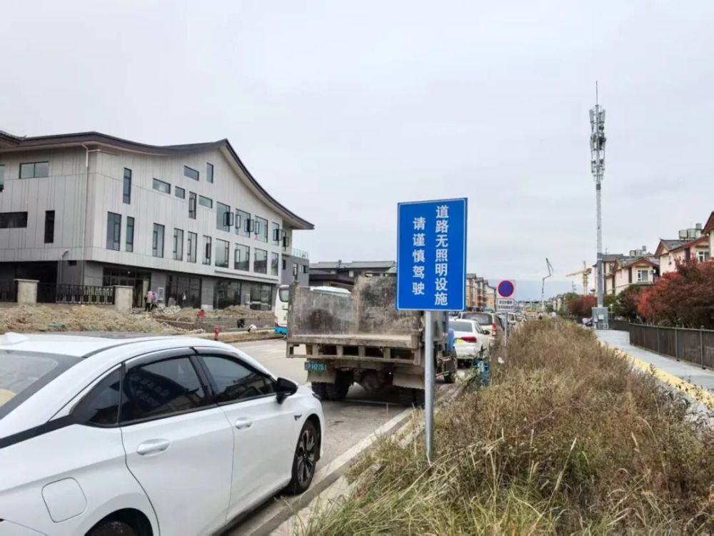 考虑到该路段暂时未安装照明设备,夜间交通安全隐患较大,古城公安交管大队还在各个小区门口、路口设立了“道路无照明设施 请谨慎驾驶”的提示牌,提醒过往车辆注意安全。