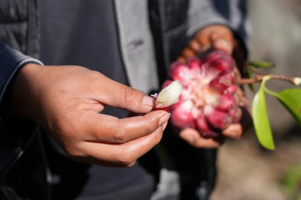 这枚“奇果”学名Kadsura coccinea,别名布福娜,在苗语中意为“美容长寿之果”,是五味子科南五味子属的常绿攀援藤本植物,原本只是隐匿于深山疏林的野生果实。2016年,在高黎贡山下土生土长的村民李泰福,看着常在山里摘吃的黑老虎突发奇想——这么好的果子,能不能种到田里?