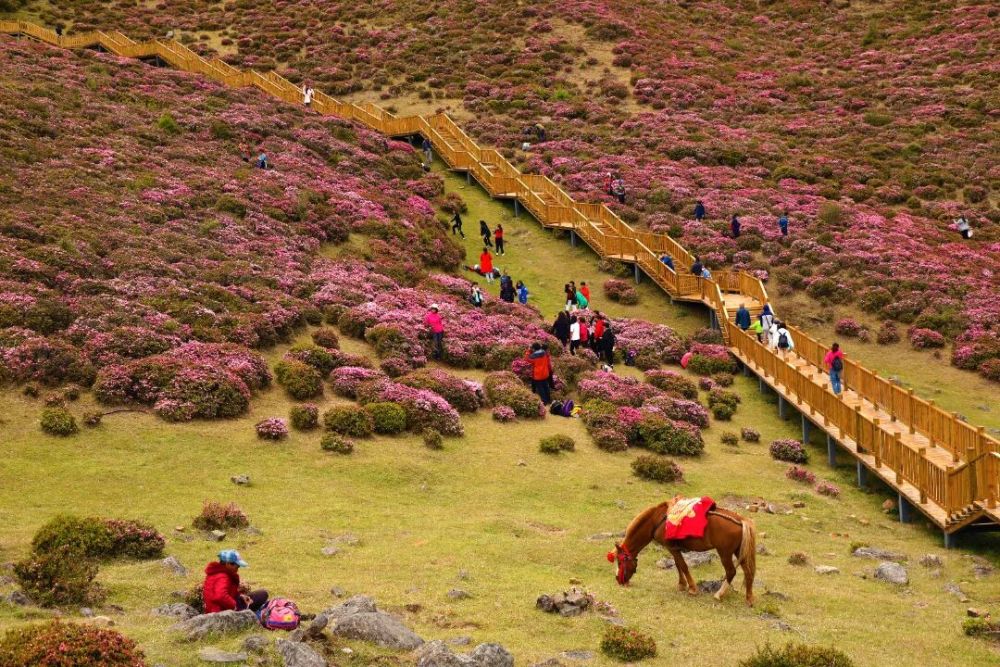 在生态旅游方面,依托辖区内上万亩野生杜鹃花海,因地制宜发展乡村旅游产业,打造了上伙房、干塘子两个旅游接待民俗村,挖掘和发展了彝歌苗舞、群众篝火晚会等乡村旅游文化,推动产业结构逐步优化转型。举办了多届禄劝杜鹃花海乡村旅游节,创新了以花为媒、以节会友、以旅促农、以节招商的特色“旅游经济”模式,每年吸引县内外游客近万人次,直接辐射带动景区周边群众增收。