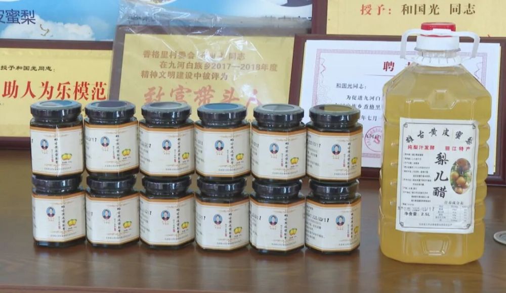 梨儿醋、梨膏产品。(丽江融媒记者 赵丽军 摄)