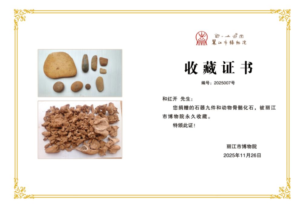 从家族木箱到公共展柜,从田间残片到文脉拼图,2025年以来,5份满载诚意的《收藏证书》,串联起普通市民与文化遗产的暖心故事,更让散落民间的“独家记忆”汇聚成城市共有的文脉瑰宝。这份文化自觉,为丽江文化传承写下生动注脚。