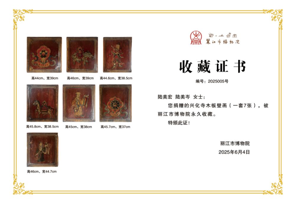 “感谢您的无私捐赠,这些文物将被精心收藏、研究并适时展出,让更多人感受其承载的历史温度。”近日,丽江市博物院文物捐赠交接仪式上,鲜红公章落于《收藏证书》的瞬间,市民陆美宏捐赠的清代兴化寺“轮王七宝”木板壁画、和红开捐赠的史前石器与动物骨骼化石正式“归巢”。这温情一幕,正是丽江民间护宝传薪、文物回家的生动缩影,彰显着基层群众守护文化根脉的赤诚之心。