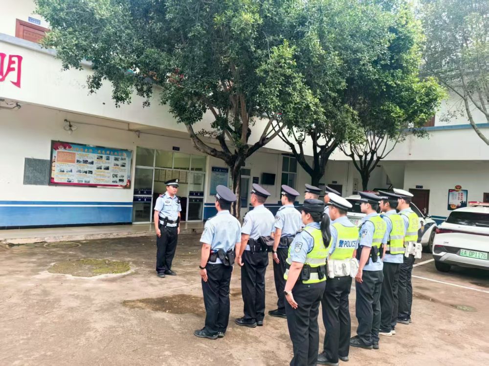 石龙坝镇派出所干警准备出警。(刘金勇 供图)