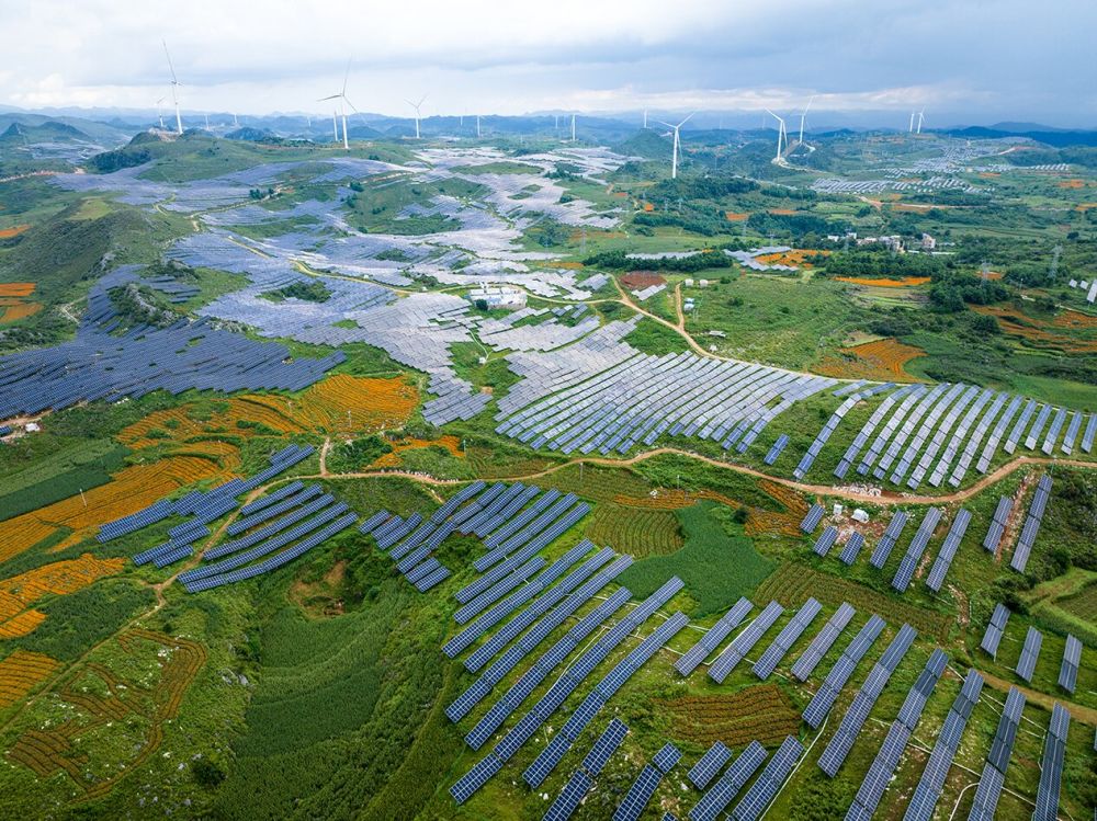 滇东高原的晴空下,一排排印有“大唐”标识的风机叶片徐徐转动,与整齐排列的光伏矩阵交相辉映。在这片由大唐云南发电有限公司滇东新能源事业部打造的清洁能源基地上,风机脚下、光伏板旁,连片的万寿菊正绽放成金色花海。近年来,大唐云南滇东新能源事业部以“风电+光伏+特色农业”融合发展模式,在文山州构建起一条绿色能源与乡村振兴深度协同的产业链,不仅点亮了万家灯火,更照亮了高原群众的致富路。