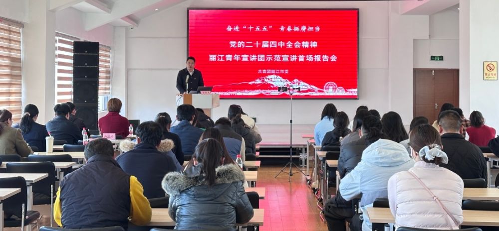 12月2日,共青团丽江市委在丽江市青少年宫举行党的二十届四中全会精神丽江青年宣讲团示范宣讲首场报告会。