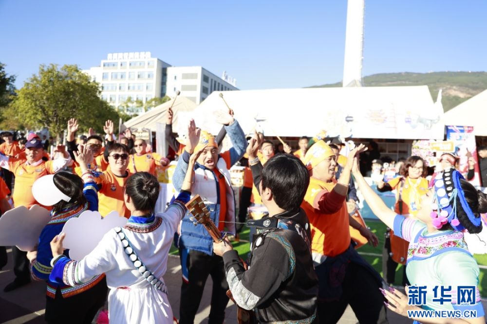 在市集上,有普洱的茶、玉溪的瓷、昭通的肉串……云南各地来客一边不遗余力推介着自己的特产,一边与其他州(市)球迷打成一片。在歌舞与烟火中,热闹的氛围持续,直到夜幕降临。