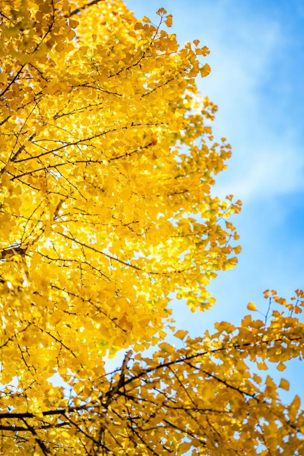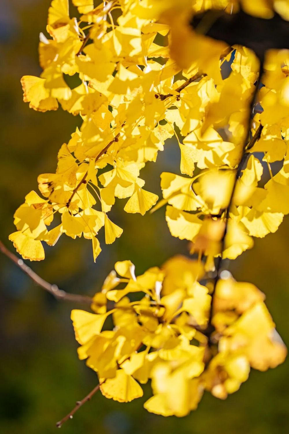 阳光透过银杏叶洒落下来