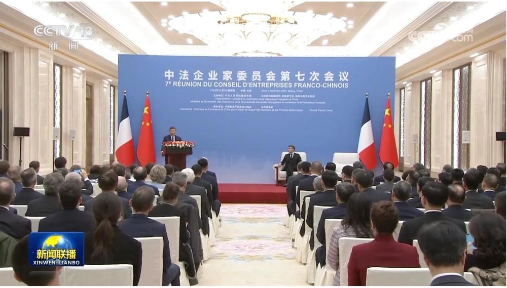 12月4日中午,国家主席习近平在北京同法国总统马克龙共同出席中法企业家委员会第七次会议闭幕式并致辞。