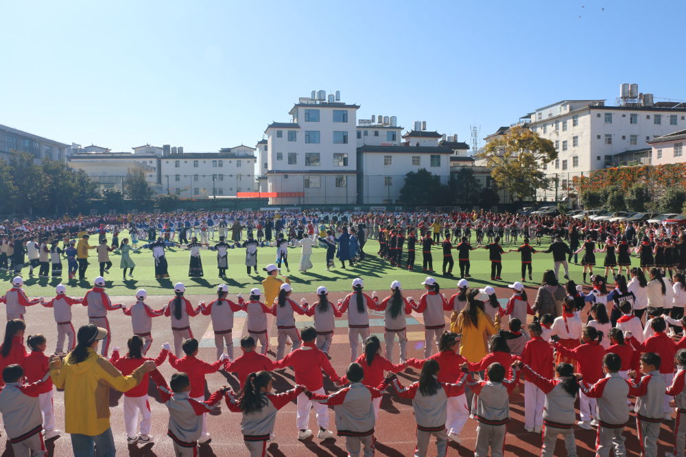 值得一提的是,本次运动会特别融入了富有纳西风韵的课间操展演。伴随着悠扬轻快的纳西族传统旋律,孩子们抬手、转身、跳跃,动作整齐划一又充满灵动。这套课间操既锻炼了身体协调性,也让民族文化的韵律在举手投足间自然流淌。孩子们在律动中感知乡土文化的魅力,在集体协作中体会团结的意义,实现了体育锻炼与文化浸润的完美融合。