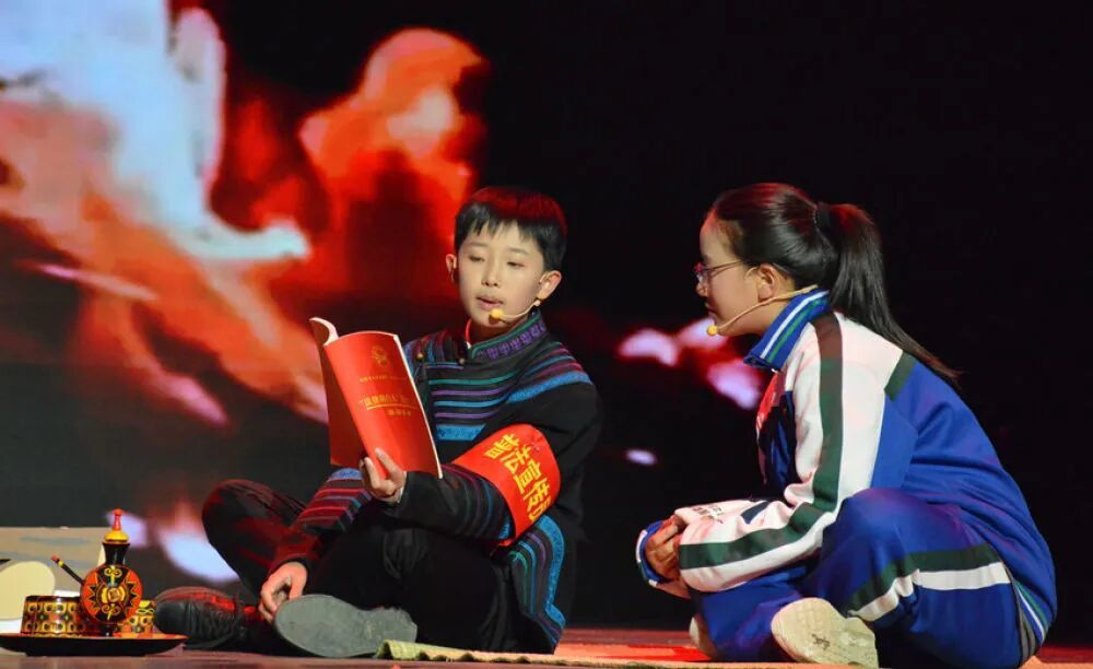 丽江市第六届大中小学生课本剧展演暨第五届幼儿经典童话剧展演现场,宁蒗县贝尔学校初中组展演《金色凉山·法治之光》。(丽江融媒记者 吕坤钊 摄)