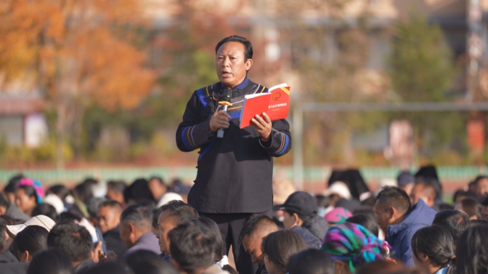 12月3日,在宁蒗县小凉山学校,1500余名师生和家长围坐一堂,聆听“普法阿普”毛建忠用彝汉双语讲述法治故事。这是他扎根基层23年来的第1000场宣讲,从木楞房的火塘边到网络上的普法直播间,从田间地头到校园课堂,毛建忠用一句“我要用自己的语言唤醒我的民族”,道出了法治最朴素的价值。