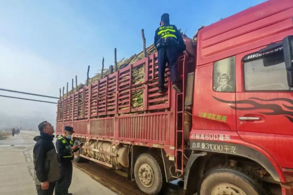 12月2日,五百余吨缅甸甘蔗在畹町出入境边防检查站芒海分站执勤民警的验放下顺利入境,标志着芒海通道为期数月的2025/2026榨季甘蔗跨境运输正式拉开序幕。