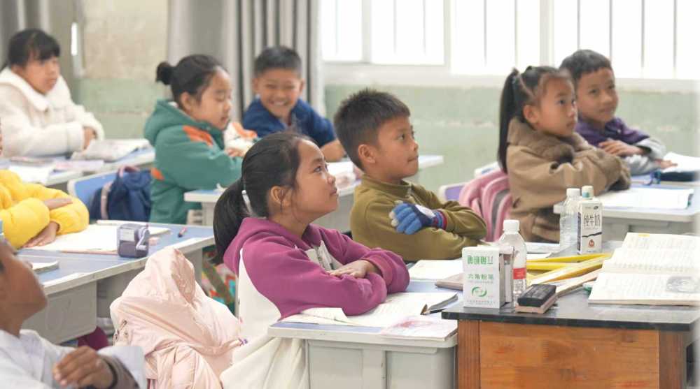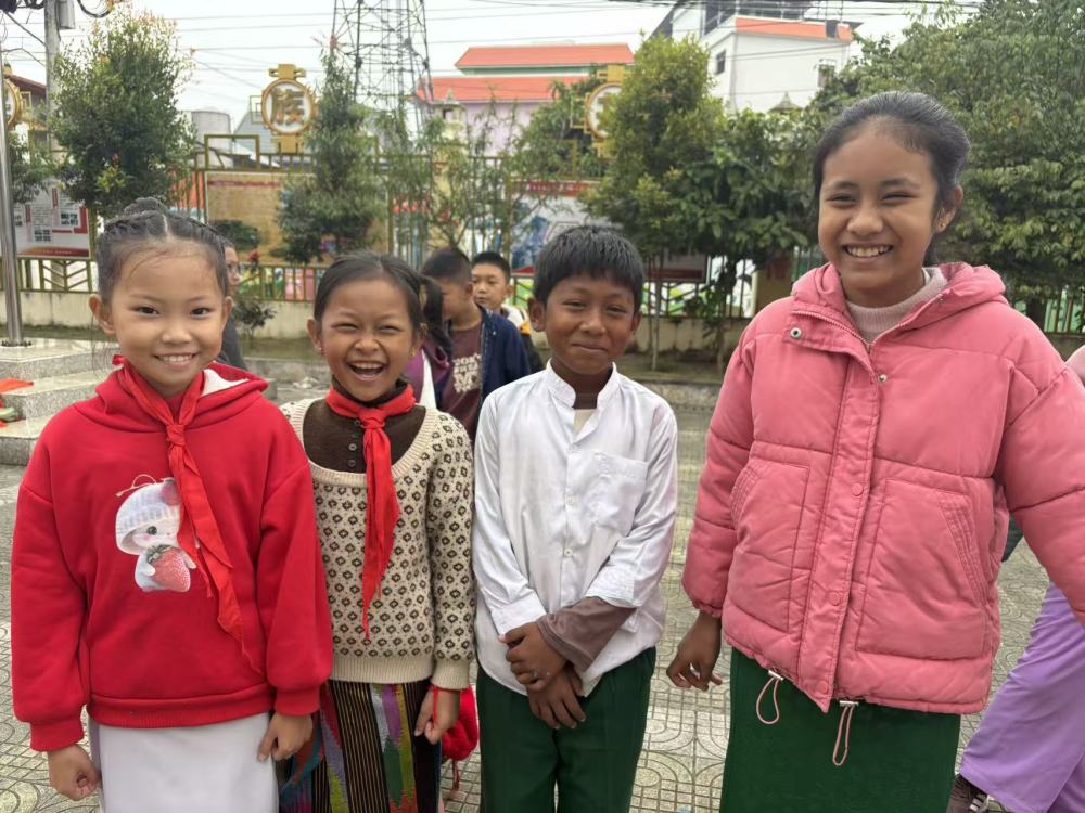 校长孙加亮站在一旁微笑介绍:“这些绿色校服的孩子都来自缅甸,他们和中国孩子一起学习、一起游戏,真正做到了同在一片蓝天、同在一个教室、同上一门课。”