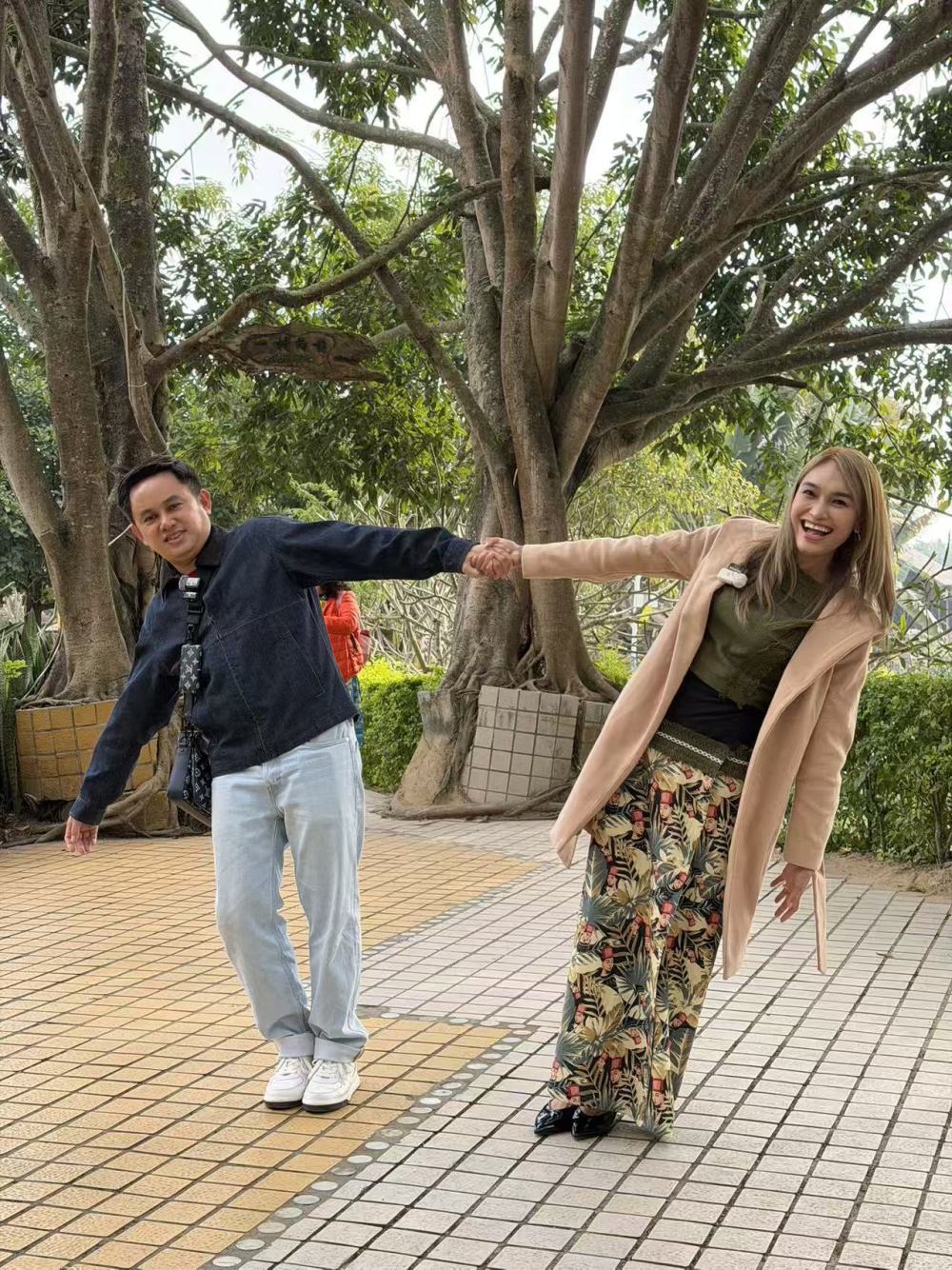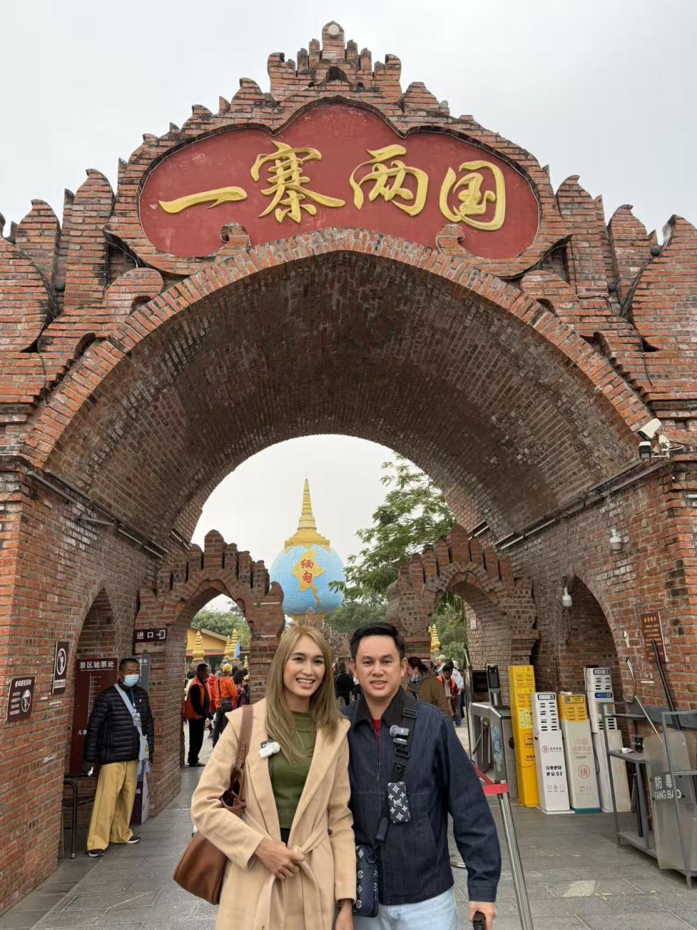 SeinPhyo和Yi在“一树两国”景点打卡拍照