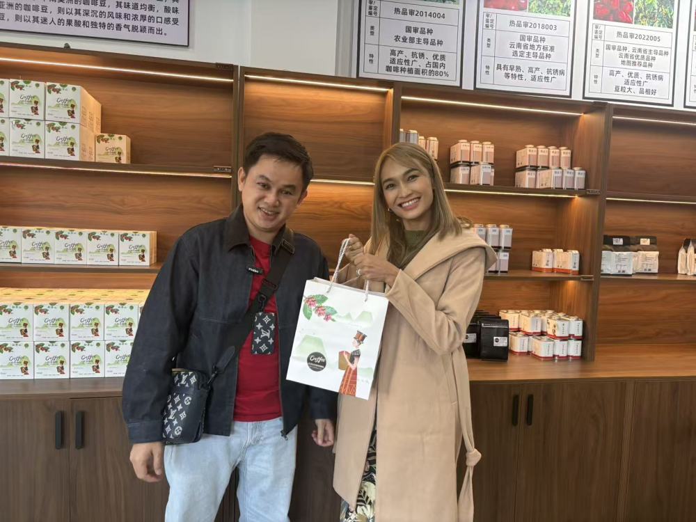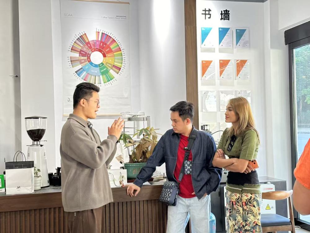 在参观过程中,这对博主夫妇了解了从一颗种子到一杯好咖啡的完整链条。“好咖啡需要‘三位一体’——好生豆、好烘焙、好萃取。”SeinPhyo和Yi边听边记录,不时提出问题。在品鉴区,他们尝到了用研究所自种咖啡豆制作的饮品。“口感很均衡,”SeinPhyo评价道,“能尝出花果香。”Yi则对其中一款带有红酒风味的豆子特别感兴趣。