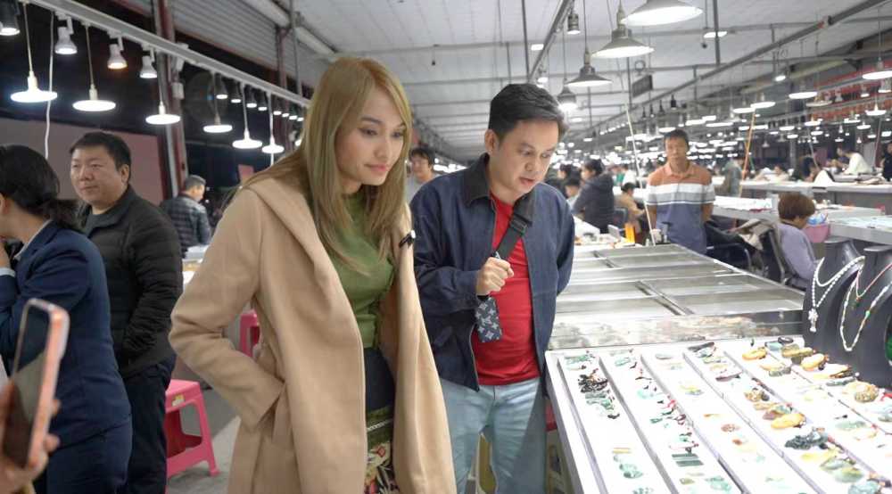 SeinPhyo和Yi在瑞丽德龙珠宝城夜市