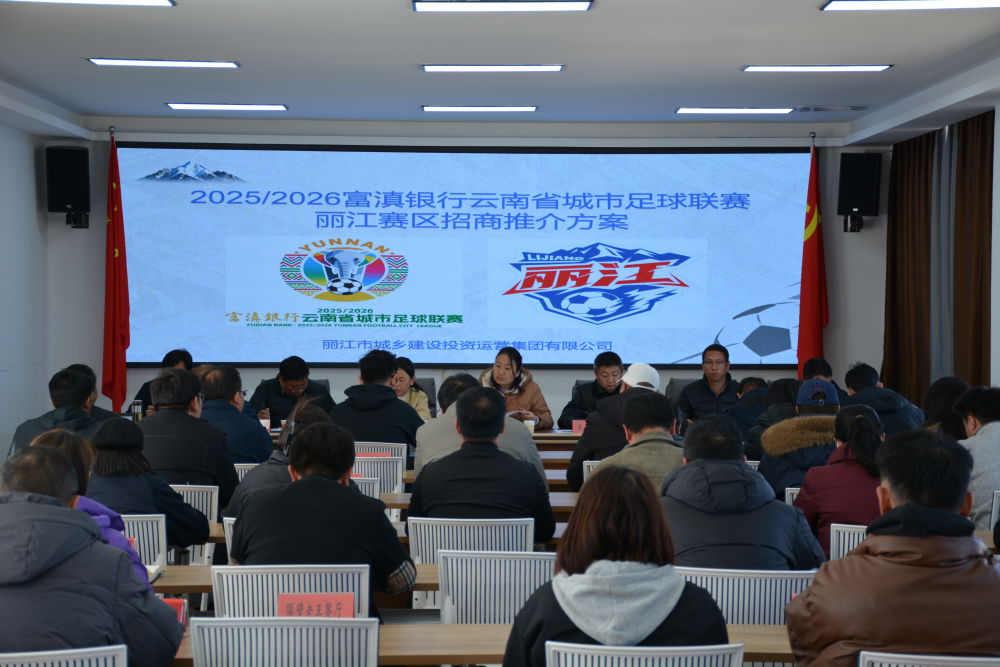 为激活体育经济新动能,探索“体育+文旅+商业”融合发展新模式,赋能丽江经济社会高质量发展,12月5日,2025/2026富滇银行云南省城市足球联赛丽江赛区招商推介会在丽江市城乡建设投资运营集团有限公司举行。本次推介会旨在围绕顶级足球赛事IP,搭建政企对接平台,释放赛事综合价值。推介会吸引了46家在丽企业踊跃参与,政企双方齐聚一堂,共同擘画丽江文体旅商融合发展新蓝图。