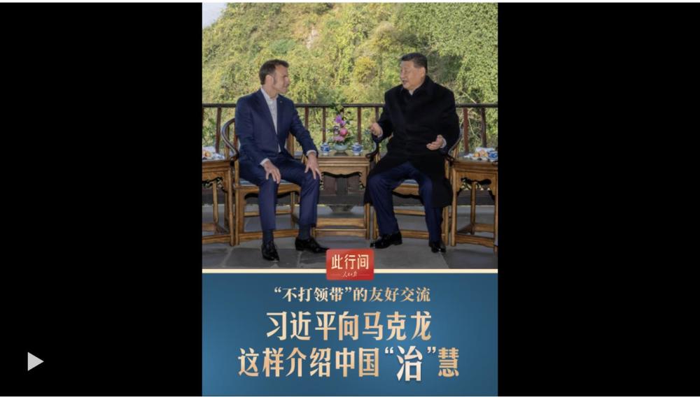 请输入图注12月5日,国家主席习近平在都江堰同法国总统马克龙进行友好交流。习近平指出,每次来到都江堰都能感受到先人因地制宜、顺势而为、天人合一、治水利民的伟大,从中汲取到治国理政的智慧。