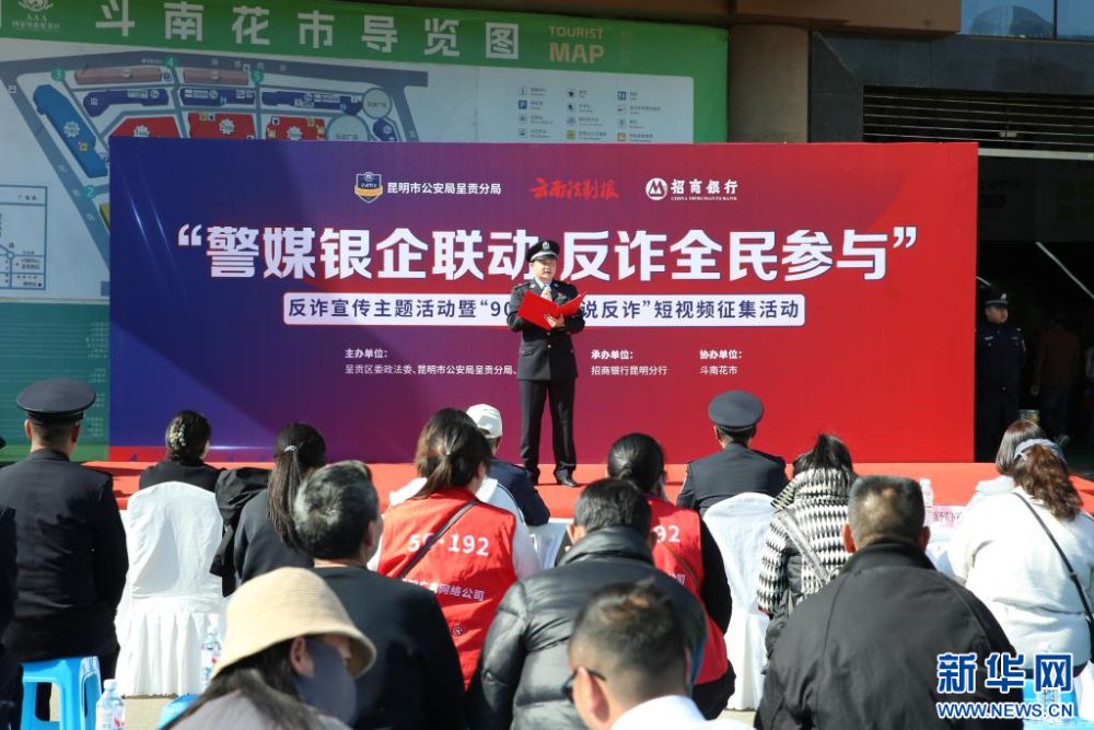 近日,昆明市呈贡区委政法委、昆明市公安局呈贡分局、云南法制报联合招商银行昆明分行在斗南花市启动“警媒银企联动 反诈全民参与暨‘全民90秒说反诈’短视频征集”主题活动。活动以法治为引领,通过案例剖析、专业培训、商户走访等形式,将反诈宣传融入营商环境建设,为企业提供“法治护企”定制化服务,助力打造安全、透明的经营环境。