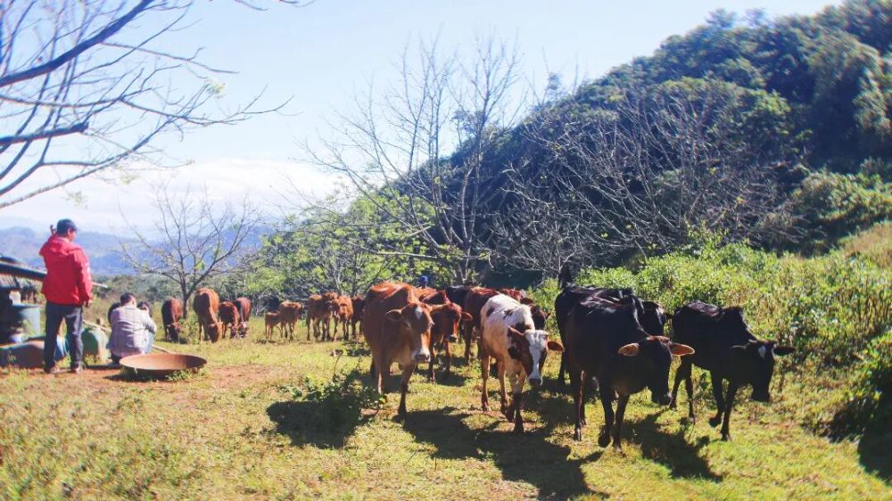 说起刚从大山深处搬迁下来的时候,37岁的禹丽军心存感激。2019年,正值脱贫攻坚期,地方党委、政府考虑到麻栗林自然村有地质灾害风险,且山高路远,交通不便,动员群众举家搬迁,禹丽军家原来属于村里的贫困户,是第一家响应号召搬迁下来。目前全家6口人,父母健在,大女儿读高二,小儿子读初一。禹丽军家赶上了脱贫攻坚好政策,加上他和妻子头脑灵活,能吃苦,很快就脱了贫,现在正往发家致富的路上迈进。“我家目前有土牛70多头,今年卖了20多头,单卖土牛收入6万多元,土牛养殖成本低,市场前景好”走进禹丽军家位于大山深处的养殖基地,野果飘香、土牛成群、蜂箱遍地。