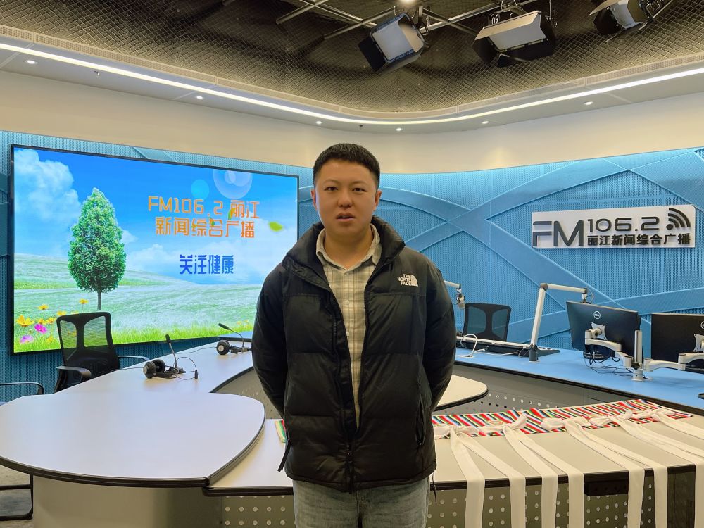 12月10日,古城区人民医院骨与创伤外科医师 和礌 走进FM106.2丽江新闻综合广播直播间。(丽江融媒记者 徐蕾 摄)
