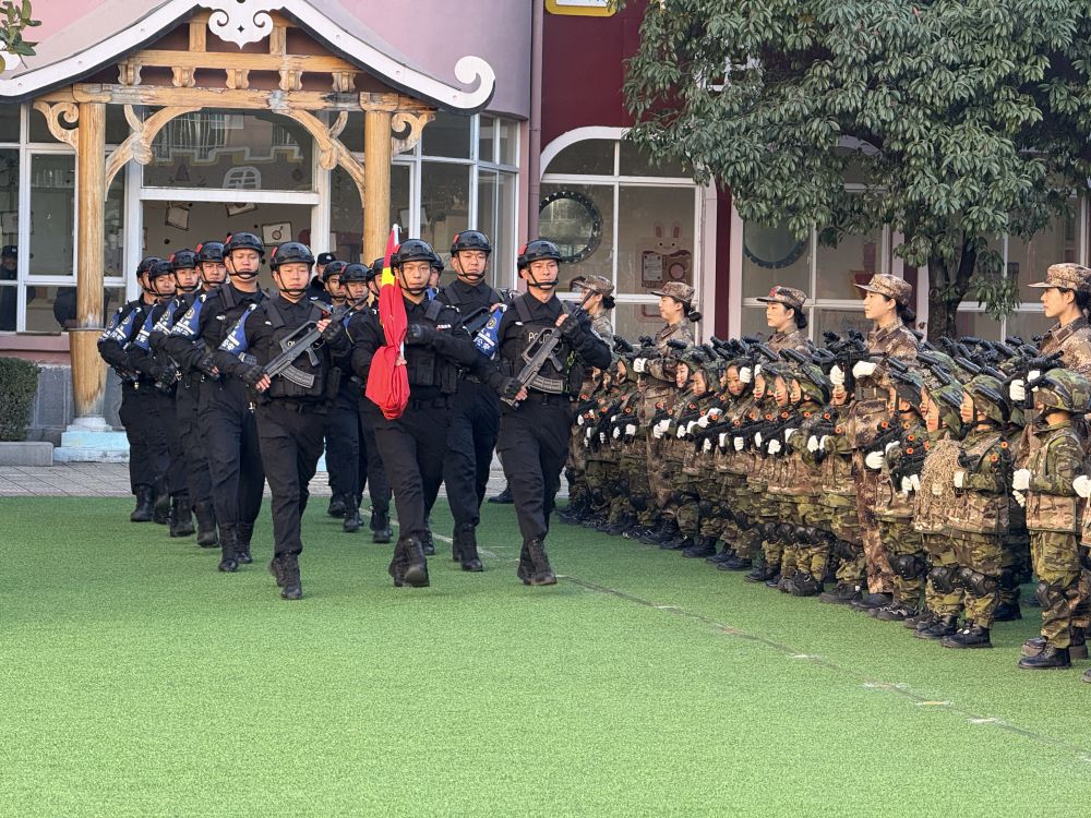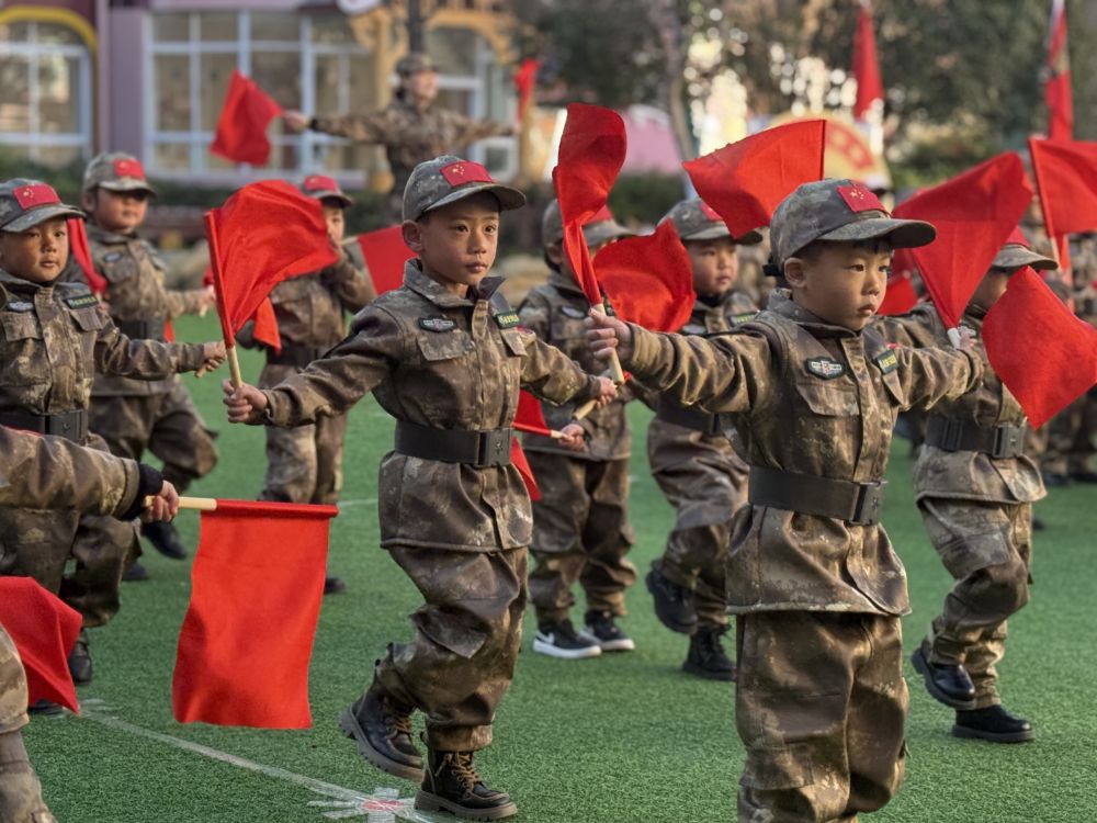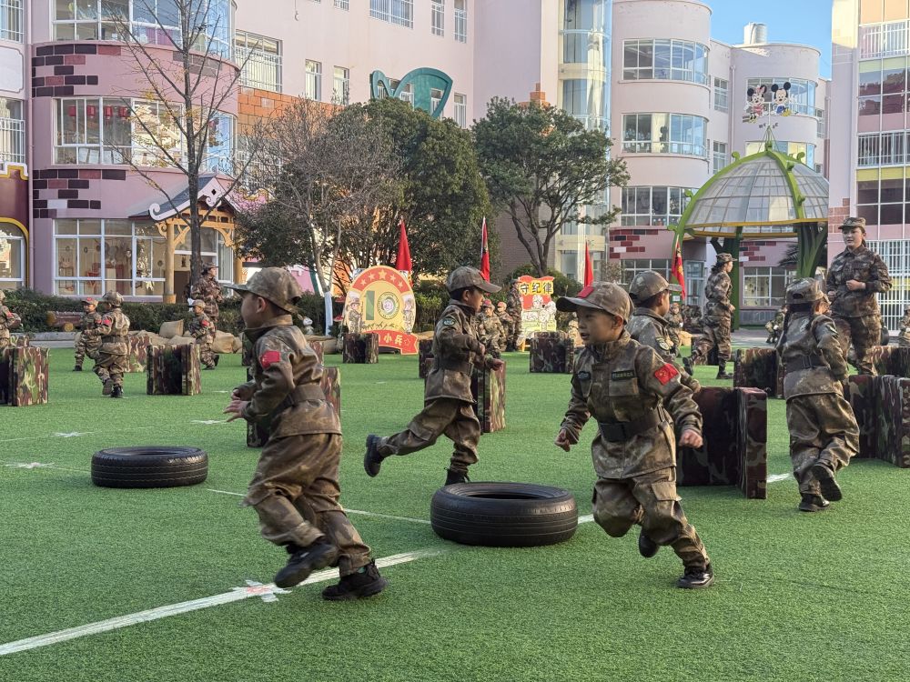 小、中、大班的体能训练展示,从勇闯关隘到协同作战再到挑战极限,孩子们用行动诠释着勇敢、协作、坚韧是他们最荣耀的勋章。军体拳、旗操、枪操展示更是精彩,拳出如风、枪出如龙,尽显坚韧风骨与兵魂传承,那是汗水浇灌的成长印记,也是童心向党的报国初心。