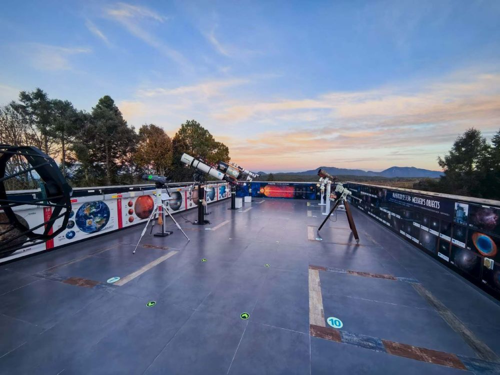“双子天文庄园目前占地近18亩,专业的观星基地包括远程天文台和科普区。”据丽江市天文协会副理事长、双子天文庄园负责人方舟介绍,针对科普与研学需求,庄园去年投入百万元升级科普区,配备有6台专业科普研学设备,兼顾了观星乐趣与天文知识传播。