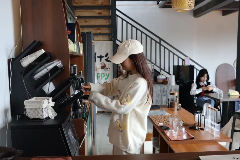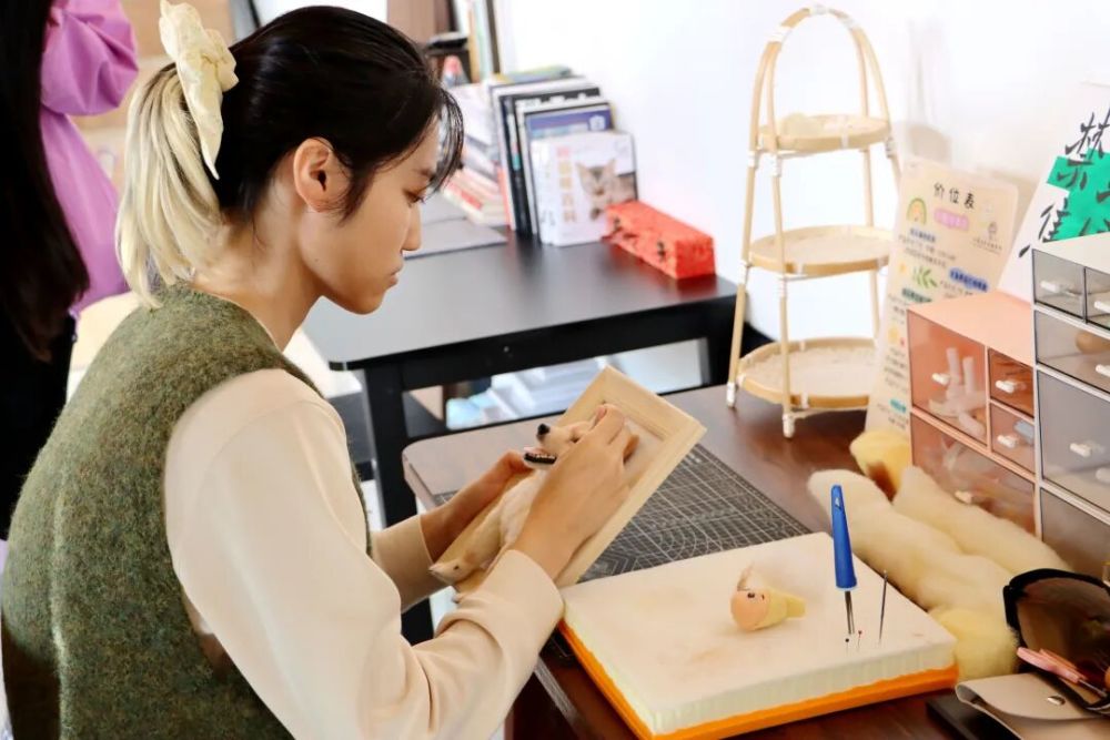 办理入住后,两人迅速行动,联合创办了“里物.gift”工作室。在这里,传统宠物羊毛毡工艺与现代创意碰撞出奇妙火花,温馨的咖啡屋也“搬进”了旅居房,开启了“白天经营创作,夜晚享受乡村宁静”的旅居创业新模式。
