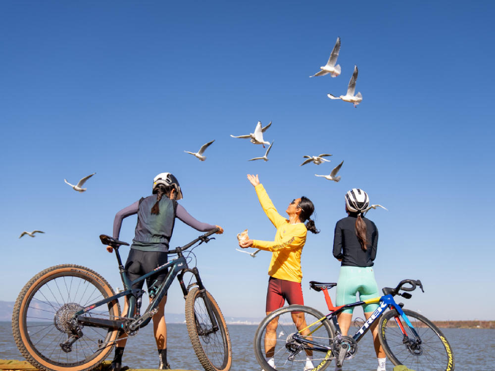 滇池绿道连通了宝丰、王官、捞渔河等湿地公园,卧龙古渔村、海晏村2个历史文化名村,小渔村、牛恋村等美丽乡村,“山、水、林、田、湖、草、村”等特色栈桥以及30多处观景平台。加上今年9月底建成开放的东风坝开合浮桥、10月份重新开放的滇池绿道帆船浮桥,绿道不仅重新构建了滇池沿线的文旅空间,也让滇池山水人文景观“串珠成链”,吸引了省内外游客的目光。从贵州到云南环湖骑行的刘凯对滇池绿道赞不绝口,他说:“相较于环湖路,绿道临水路段更多、景观更美,骑行体验和消费场景也更丰富,非常羡慕昆明有这么好的骑行环境。”