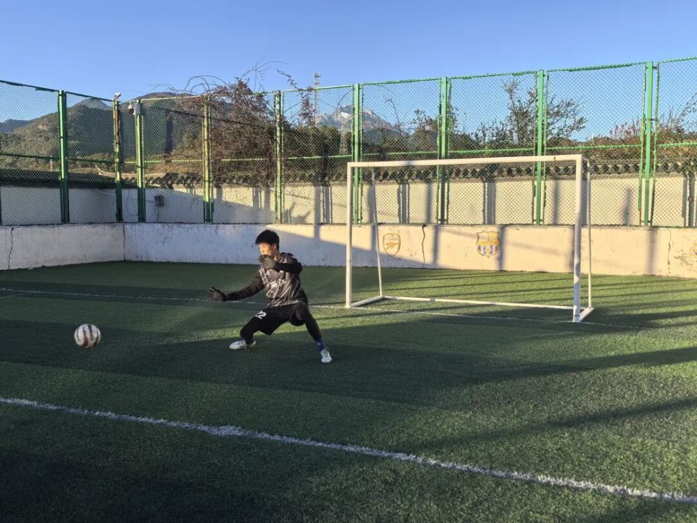 马夏林正在练习扑球。(丽江融媒记者 侯玮 摄)