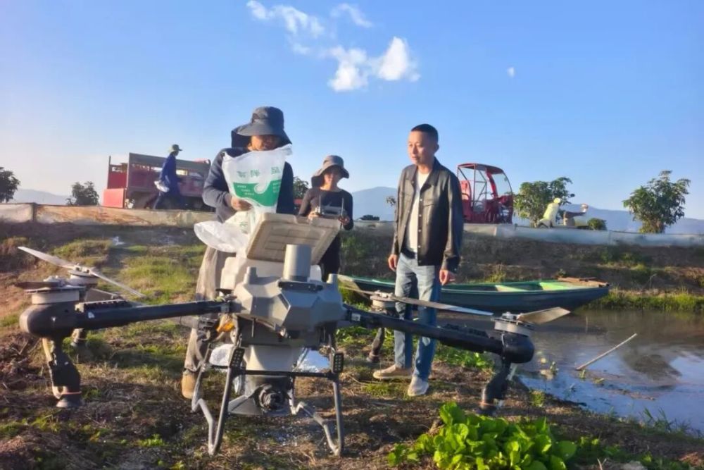 “跟着罗总干,收益实实在在!”村民岩窝罗欣喜地说,“今年我养了20亩龙虾,亩均收益超万元,明年准备扩大到100亩!”罗红的创业成功,不仅让自己实现了事业的新突破,更带动了当地群众共同致富。创业初期,罗红通过土地流转,每年为农户提供每亩1200—1300元的稳定租金,并吸纳60余名本地劳动力参与分拣、捕捞等工作,帮助群众实现“租金+薪金”双增收。随着产业规模不断扩大、技术体系日益成熟,罗红锚定了建设“万亩稻虾示范基地”的新目标,积极推行“三统一保”帮扶机制,成功培育出10余户本土养虾能手,今年底更是吸引了30多户农户预订虾苗、踊跃加入。更可喜的是,一批掌握现代农业技能的新型农民在基地中成长起来,有的还考取了无人机驾驶证,让传统养殖插上科技的翅膀。稻虾产业还有效带动了餐饮、物流等配套发展,通过与翔云等航空物流合作,勐遮小龙虾得以快速销往南京、上海等大城市,一条从田间到餐桌的现代化产业链正稳步形成。