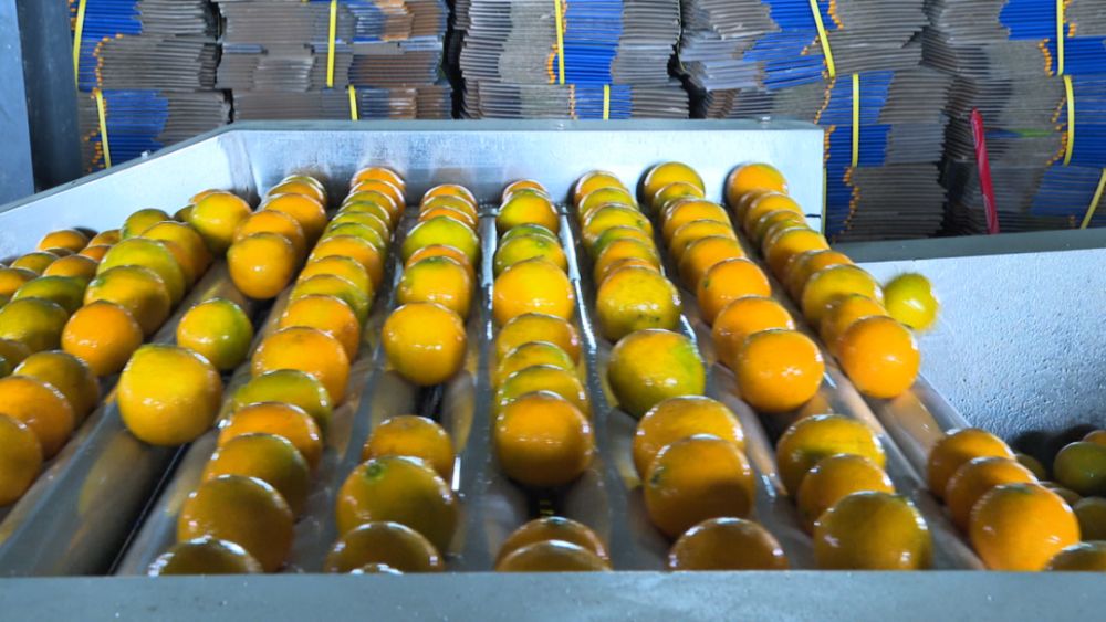 车间内,选果机高速平稳运转,轰鸣声中透着产业振兴的底气。一个个金黄饱满、果香四溢的柑橘,沿着传送带整齐排队,依次通过清洗、分级等多道“体检”工序,将果实精准分入不同等级的收纳通道。相较于以往人工分拣的繁琐低效,这里的全自动化分选模式实现了质的飞跃——效率是传统人工分选的10-15倍,以往数十名工人一整天的分拣量,如今一台设备几小时便能完成。更重要的是,选果设备对大小、色泽等核心指标的精准分级,让杨万柑橘彻底告别了“混装统售、好果贱卖”的尴尬局面,极大提升了产品的均一性和市场竞争力。