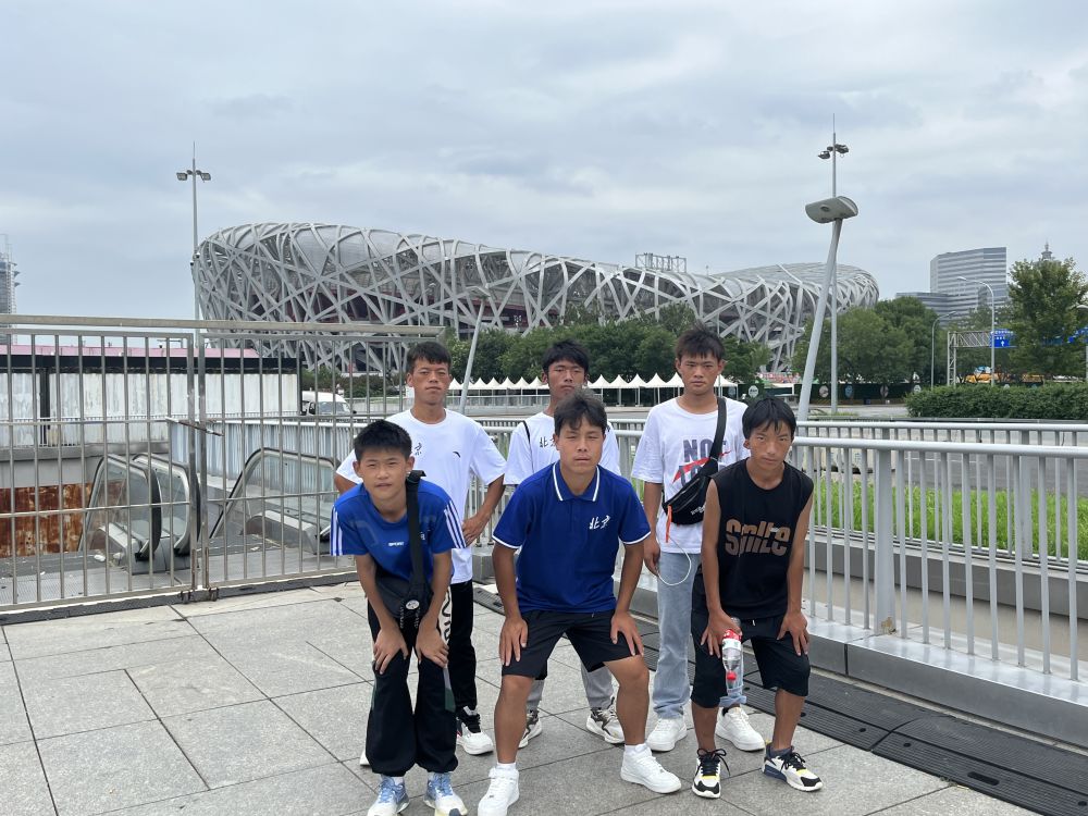 苏比古(右一)和队友们等待进入赛场。(供图)