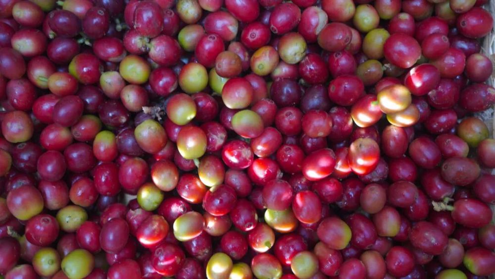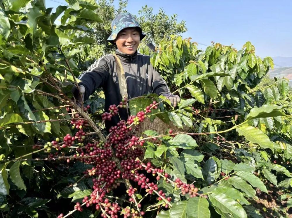 娜允镇咖农采摘咖啡果。张娜配 供图