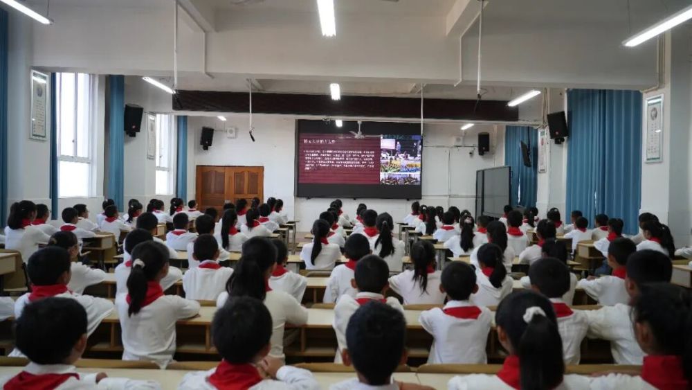 新华乡艾欧沛远阳光希望小学的学生们观看南京大屠杀历史纪录片。保山市委宣传部 供图