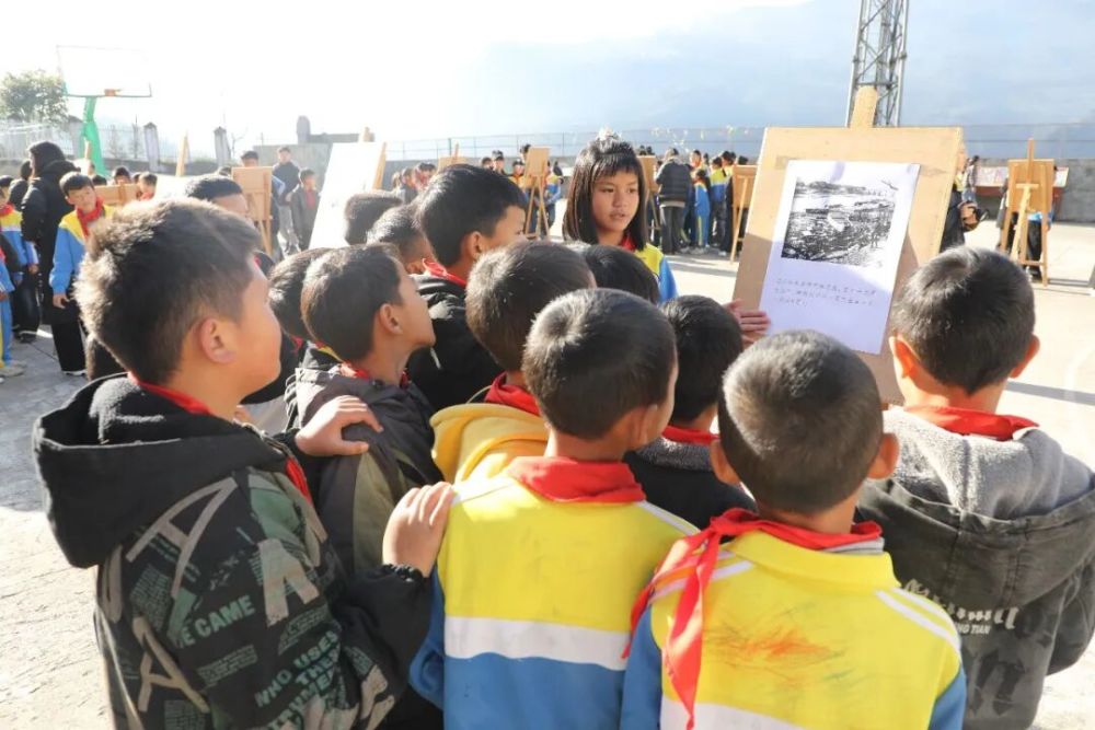 元阳县小新街乡下新寨小学的学生们观看抗日战争主题展览。陈萍 摄