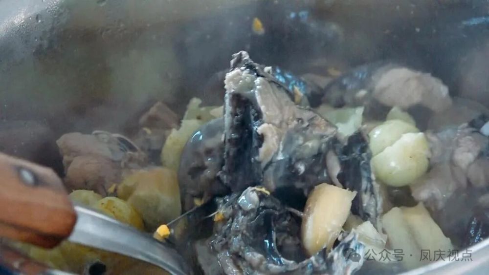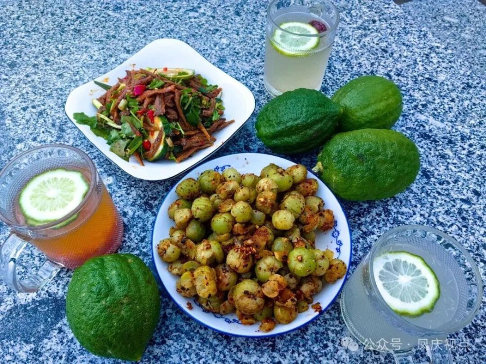 而滇橄榄的魂,始终离不开彝苗人家的袅袅炊烟。节庆时分,土灶大锅里的鸡汤咕嘟作响,油花在汤面轻舞,香气穿堂过户。女主人将新鲜橄榄捣碎,待鸡肉酥烂时倾入锅中,文火慢煨间,酸鲜悄然化解了油腻,汤色渐如清露。舀一勺入口,酸得明亮,鲜得醇厚,甘得绵长,每一口都是山魂与炊烟的交融,是围炉而坐的温情注脚。平日里,最质朴的吃法反而最动人心:橄榄捣碎,拌上盐巴、味精与蘸水辣,便是一碟活色生香的人间至味,总在谈笑间一扫而空,只留下对下一次相聚的殷殷期盼。