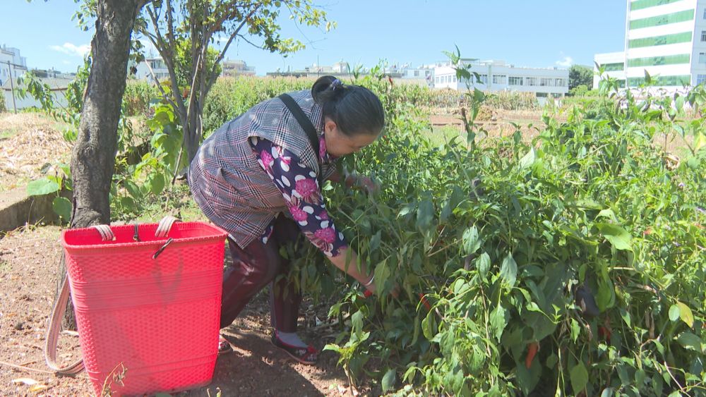 熊连凤在采摘辣椒。(丽江融媒记者 赵丽军 摄)