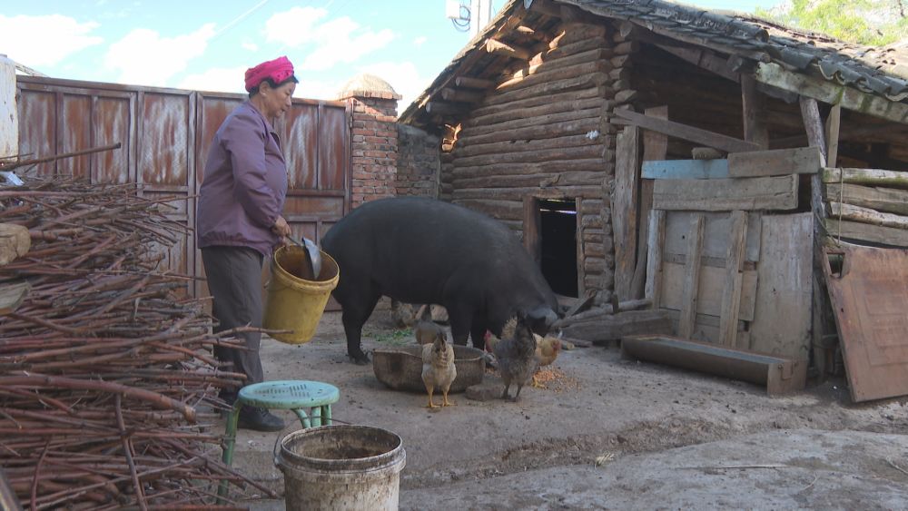 阿普独玛在照料家禽家畜。(丽江融媒记者 赵丽军 摄)