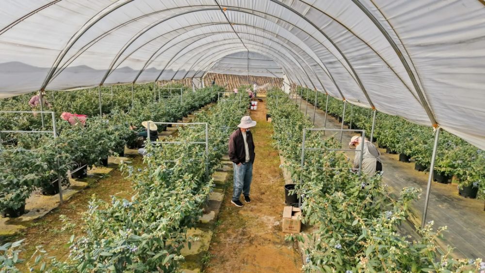 在蓝莓产业发展方面,马龙区以科技赋能、品牌塑造和产业链延伸为核心,形成了规模化种植与多元化经营并进的格局,在月望乡、纳章镇、通泉街道等乡(镇、街道)温室大棚蓝莓如雨后春笋般涌现,目前蓝莓产业已形成规模化发展态势,种植面积达1.5万余亩,年产量5000吨,产值突破3亿元,成为高端水果市场的“宠儿”。为破解蓝莓种植技术难题,马龙区组建了由科技特派员牵头的服务团队,深入田间地头提供技术指导,推广基质栽培、水肥一体化等先进技术。在销售端,通过电商平台、直播带货等渠道进行销售,并采用订单式销售模式销往全国各地。