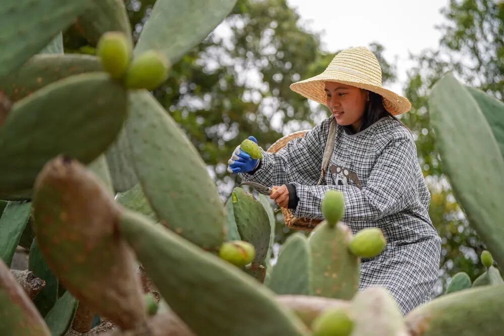 而撬动这块“巨石”的支点,竟一直默默扎根在这片土地上。村党支部发现,在这片土地上顽强生长了200余年的仙人掌耐旱、耐贫瘠,根系能固土保水,恰好与石漠化治理需求契合。一个大胆的想法诞生了:向石漠要效益,让“生态刺”变成“产业金”。